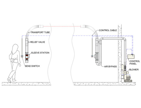 Pneumatic tube systems use air pressure, compressed air, and controlled pneumatics to move carriers containing items or documents through a network of tubes.